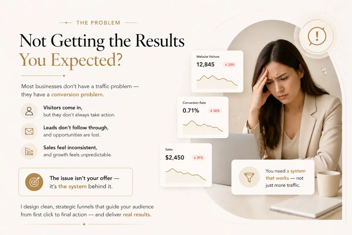 My mission is to eliminate conversion gaps and help you build a system that consistently turns effort into real revenue.