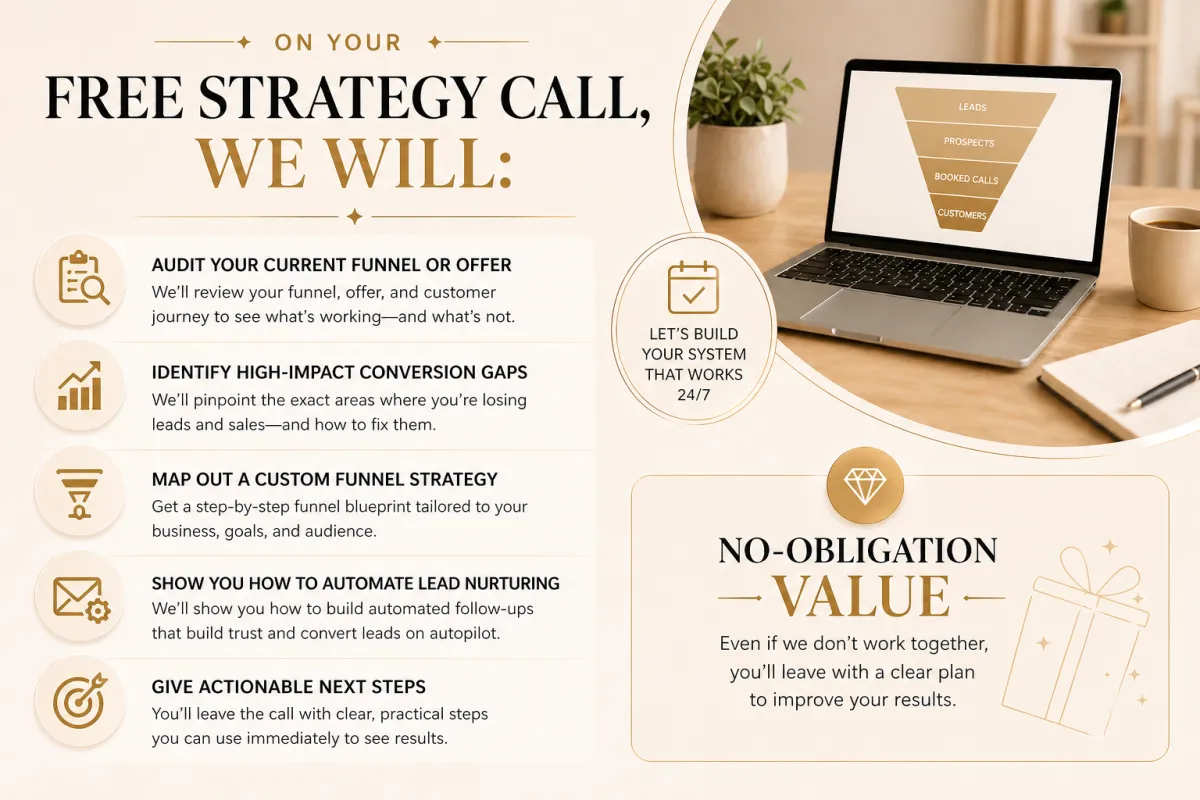 I build conversion systems using funnels and automation to help business owners, coaches, course creators, and service providers turn interest into leads, leads into bookings, and bookings into paying clients.